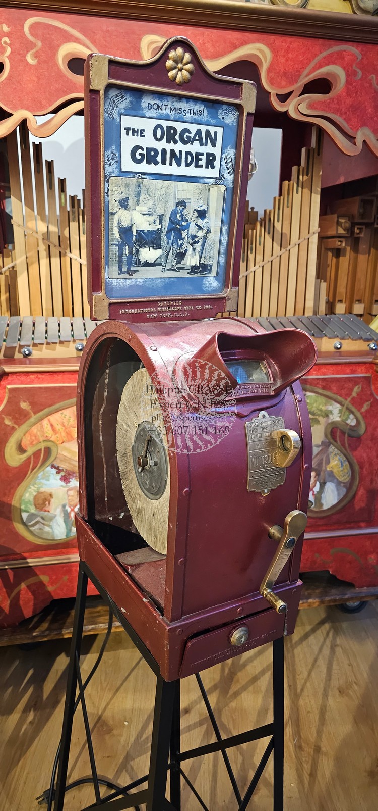 A monnayeur, cet appareil de foire et de lieux publics diffusait des images animées sur le principe du foliascope. Tour à tour amusantes, pédagogiques ou érotiques, elles justifient les 5 cents que chacun doit mettre dans la machine. Une fois insérée, la pièce débloque le mécanisme, allume une ampoule au-dessus des images et en tournant la manivelle nous visionnons ici une amusante saynète autour d'un piano mécanique de rue.